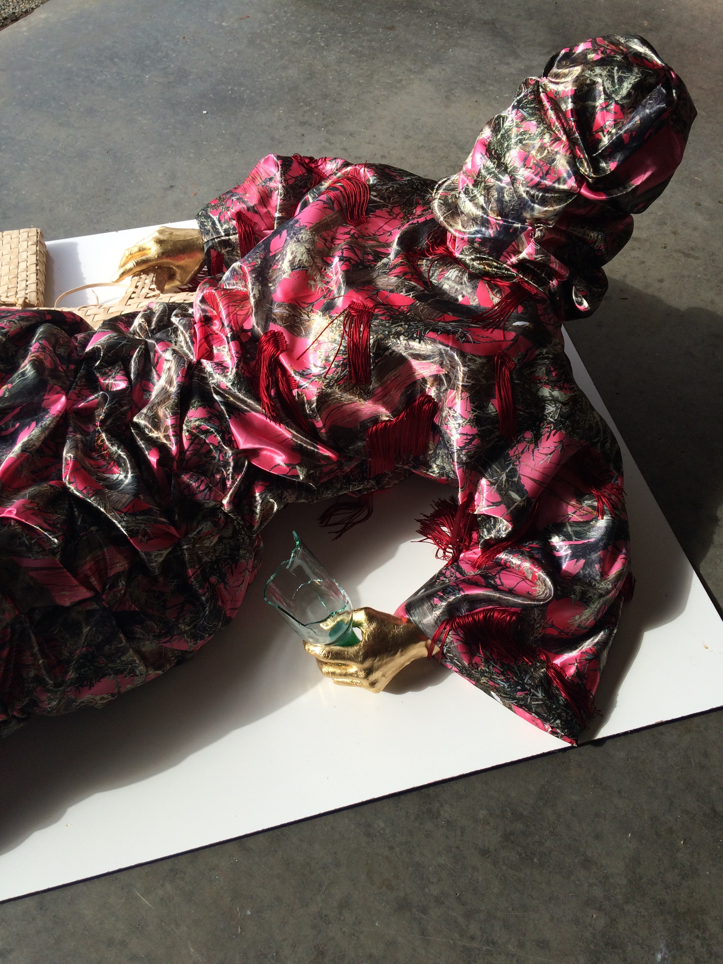 Necessity About to Become a Mother click on images to enlarge Necessity About to Become a Mother hand beaded fabric, handwoven reed basketry, polymerized plaster, metal leaf, broken glass bottle life size, 2015 Share this: Click to share on X (Opens in new window) X Click to share on Facebook (Opens in new window) Facebook Click to share on LinkedIn (Opens in new window) LinkedIn Click to share on Reddit (Opens in new window) Reddit Click to share on Tumblr (Opens in new window) Tumblr Like Loading... Related