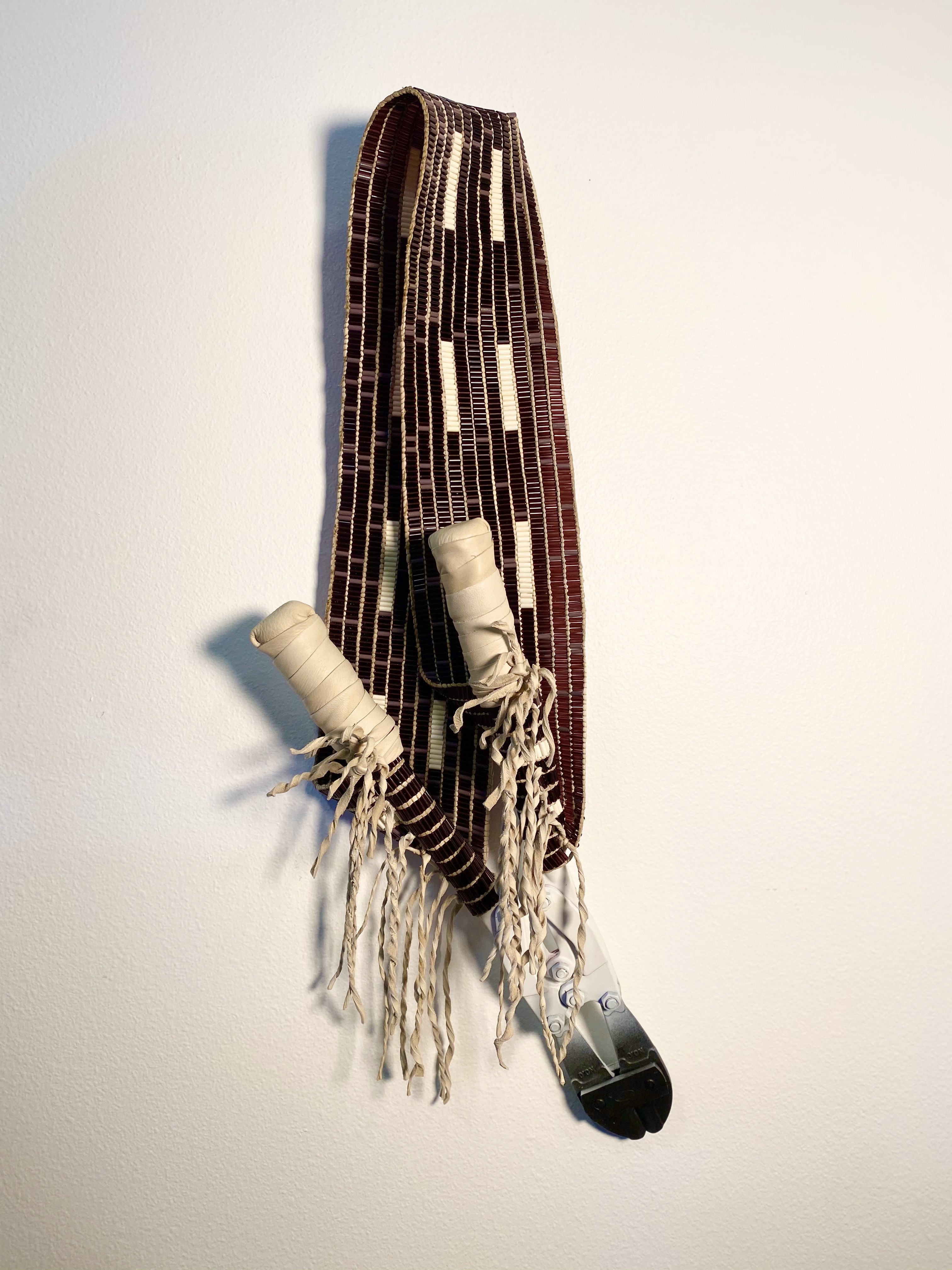 Border Breaker glass wampum beads, deer hide, bolt cutters, life size 2020
