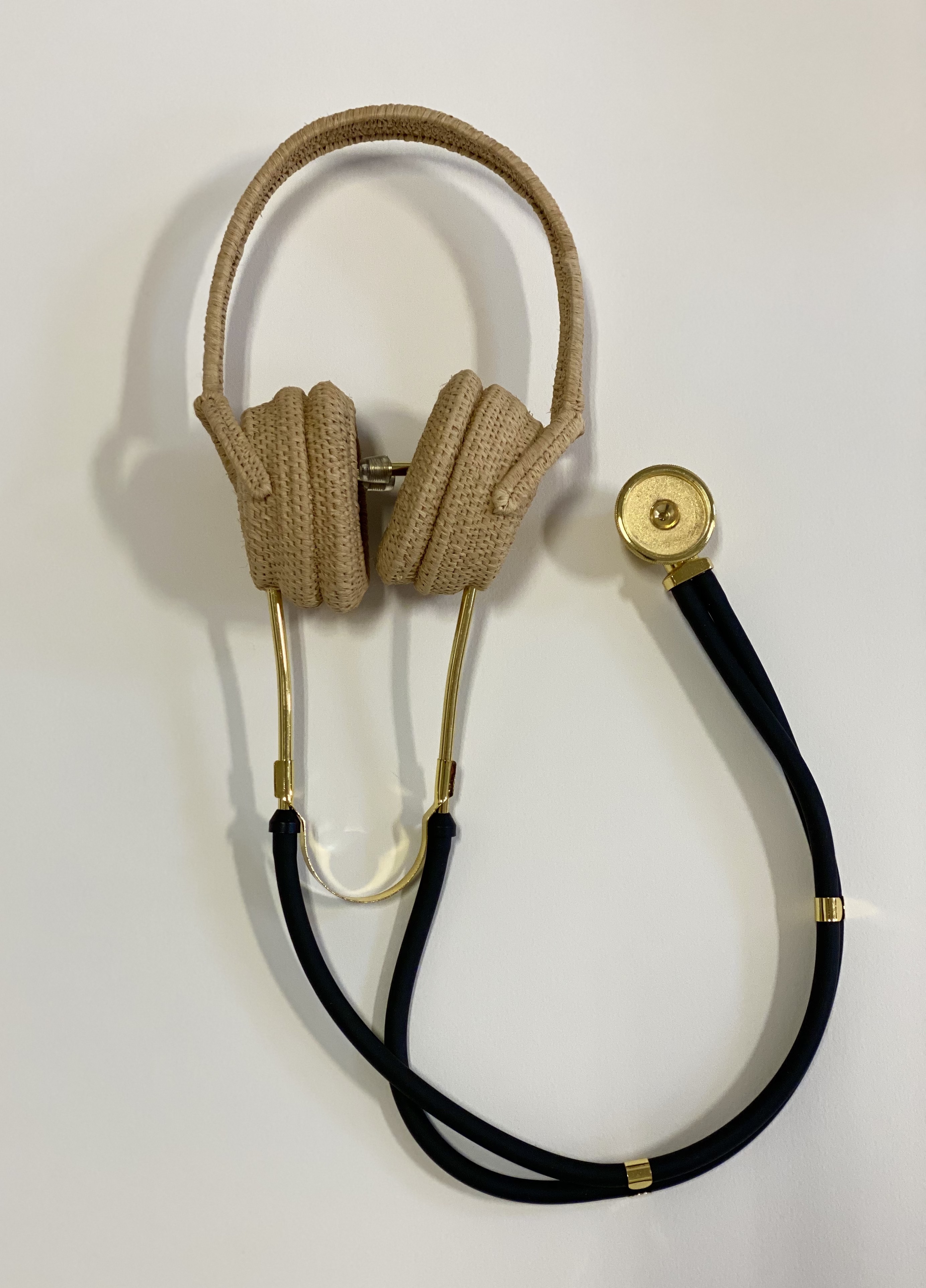Love Song (translation basket) is a handwoven basket in the shape of noise cancelling headphones holds the earpieces of a stethoscope to translate understanding of a heartbeats as a love song. Stethoscopes are used by emergency medical workers in hospitals and at locations of state and police violence on black and brown bodies, they are a listening tool for life and life-saving. The translation basket is a reminder that every heart beat is a precarious love song with an inevitable end. Failure to recognize, value, honor and protect these songs and the bodies who sing them has been instrumental in building violent white supremacist anthropocentric cultures, governments and individuals based on disconnection. The translation basket is a container to remedy the enforcement of disconnection.