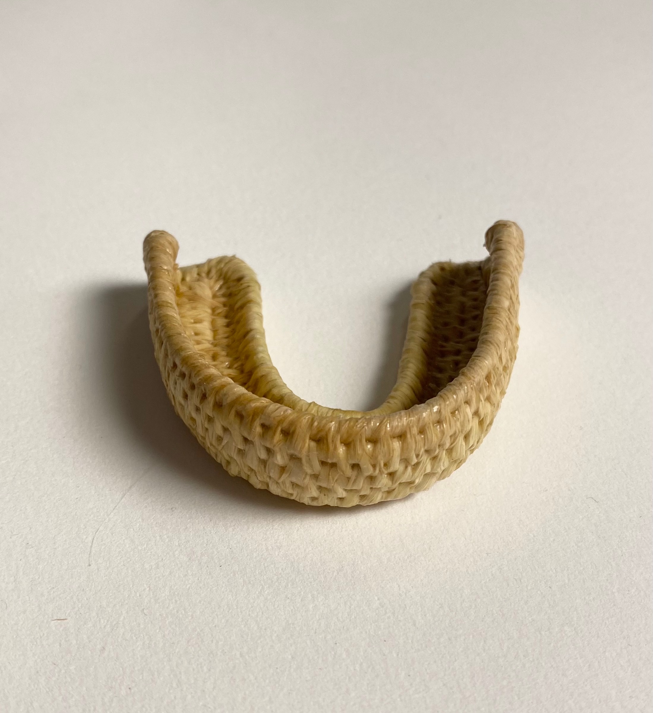 Custom fit (mouth guard) Custom fit (mouth guard) Life size variable (adult, child) rubber coated handwoven palm fiber, 2021 Share this: Click to share on X (Opens in new window) X Click to share on Facebook (Opens in new window) Facebook Click to share on LinkedIn (Opens in new window) LinkedIn Click to share on Reddit (Opens in new window) Reddit Click to share on Tumblr (Opens in new window) Tumblr Like Loading... Related